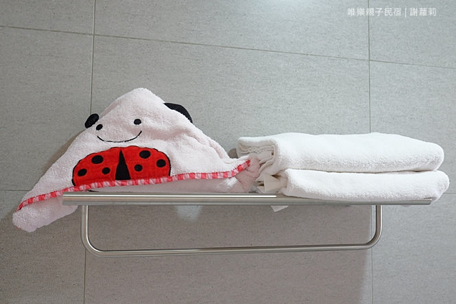 從很多小細節,你都能瞧見民宿在配置上的用心,小孩還有專屬的兒童造型浴袍,印象中,每一間的圖案還都不一樣,這個芭比房的是可愛的小飄蟲:)