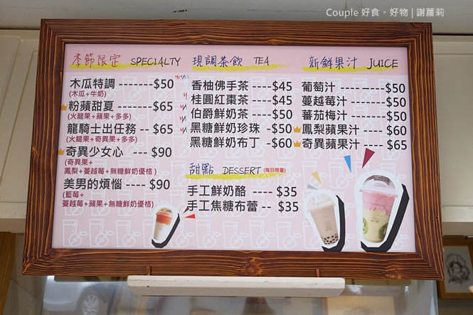 這邊的餐點主為以果汁及帕尼尼為主,飲品大致上有果昔特調、茶飲、新鮮果汁三大類,而帕尼尼口味很豐富,鹹與甜就高達了16種口味呦!不少種其實都蠻吸引人的,不過最大亮點還是那個讓我這個起司控瘋狂的唯一起司啦!XD