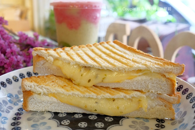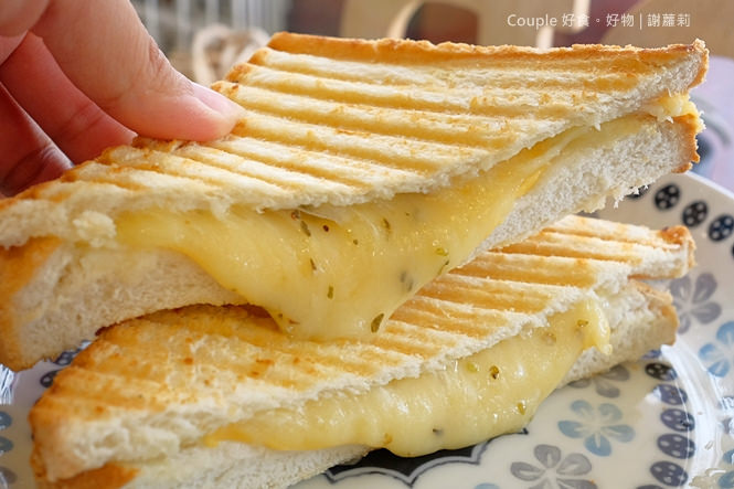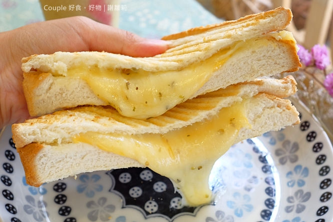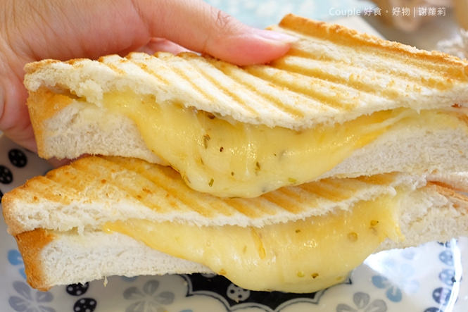 融合兩種起司的半融內餡表現不錯,因為加了香料,讓口感也較不會那麼顯膩,吐司稍嫌乾了一些些,但配飲料倒是還OK囉!