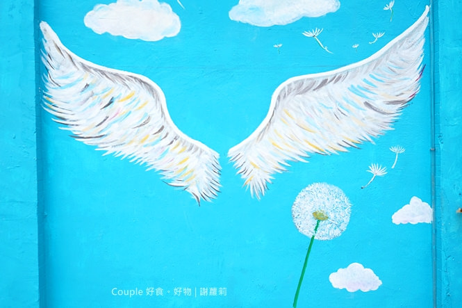 來到這邊有一個一定要特別提一下,就是房子外面有一面翅膀的塗鴨牆,這可是這邊很熱門的拍照地,不管是拍人、飲料,都是相當棒的取景背景。