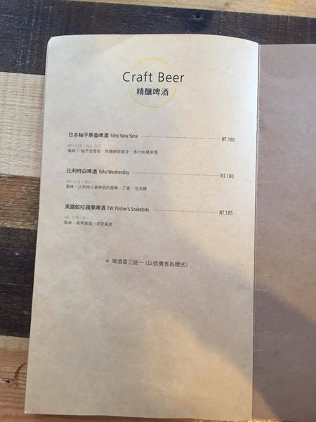 ▼精釀啤酒(早午餐咖啡店竟然有啤酒可以點!!!)