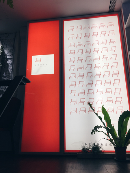 ▼往左滑開黃色大門,橘紅燈牆映入眼簾