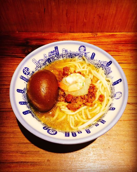 我點的是他們的招牌擔仔麵,味道很到位,不會太油也不會太鹹,麵條的Q度也相當夠,於是我加了一顆滷蛋看起來更好吃了