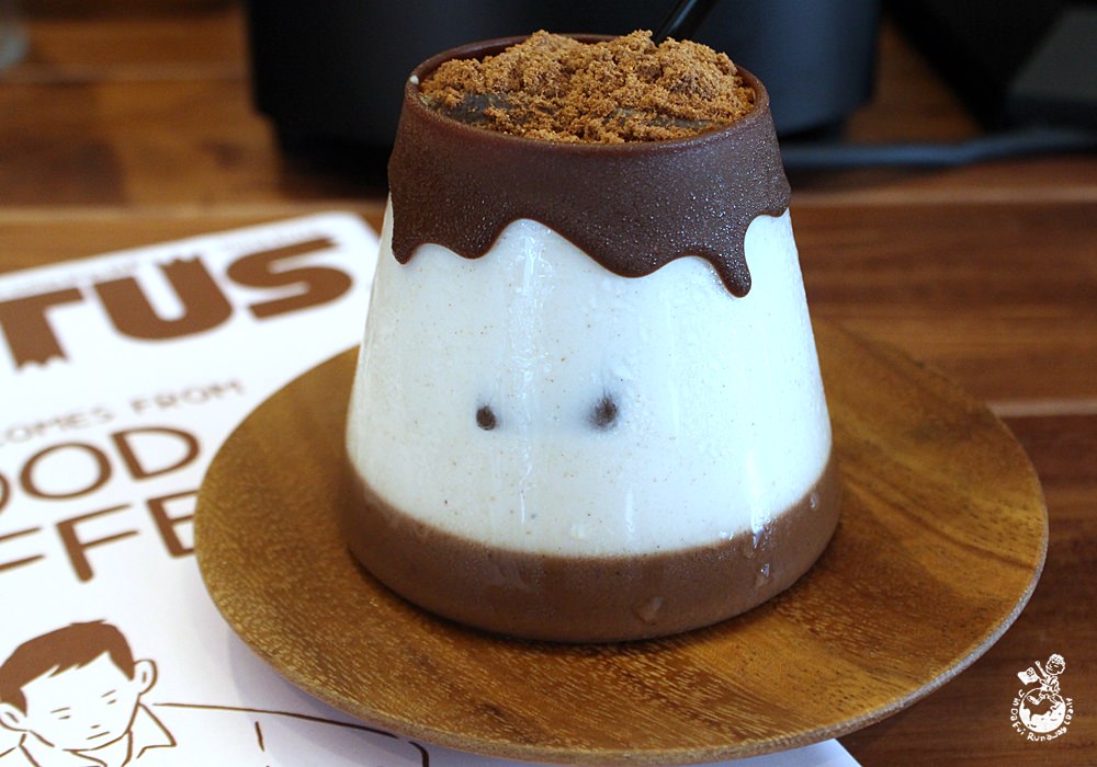 飲品顏色分層與造型玻璃杯根本天作之合,加上杯緣的巧克力波浪的點綴,完美呈現出一座噴發巧克力熔漿的咖啡冰山的模樣,這是我目前看過/喝過最可愛的人造山了,不過喝起來其實就是巧克力牛奶的滋味。