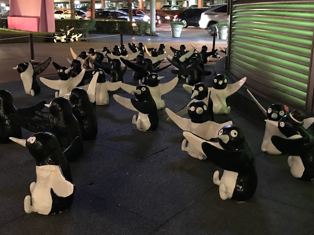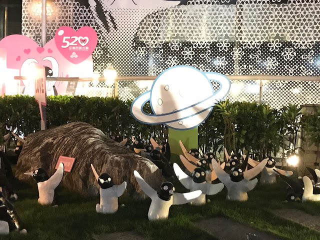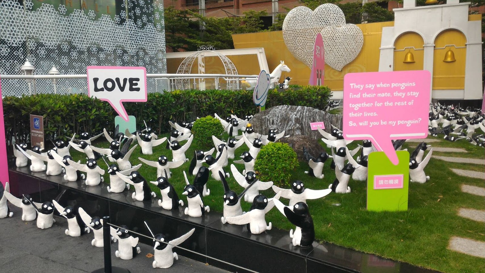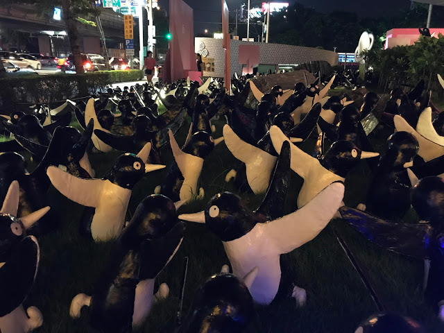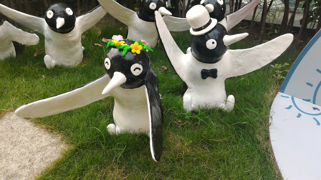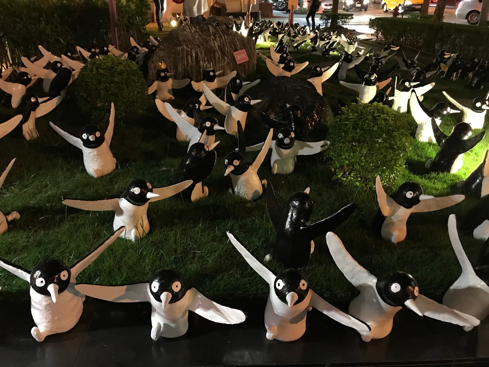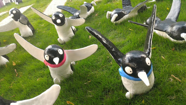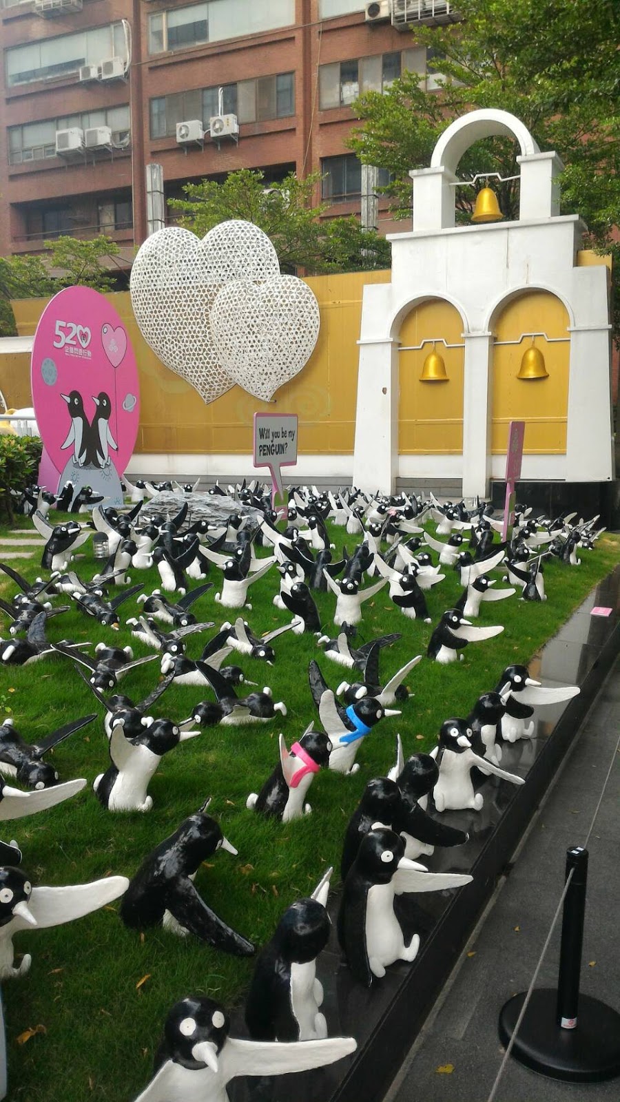 企鵝擺放在廣場綠地上感覺像是要去遊行(喂 XD