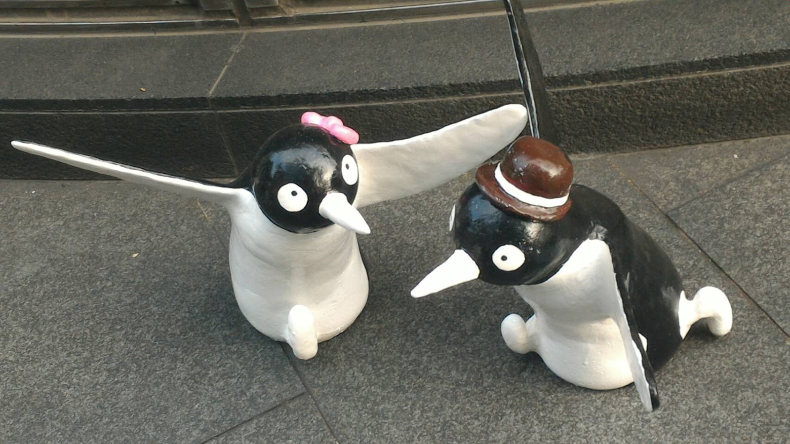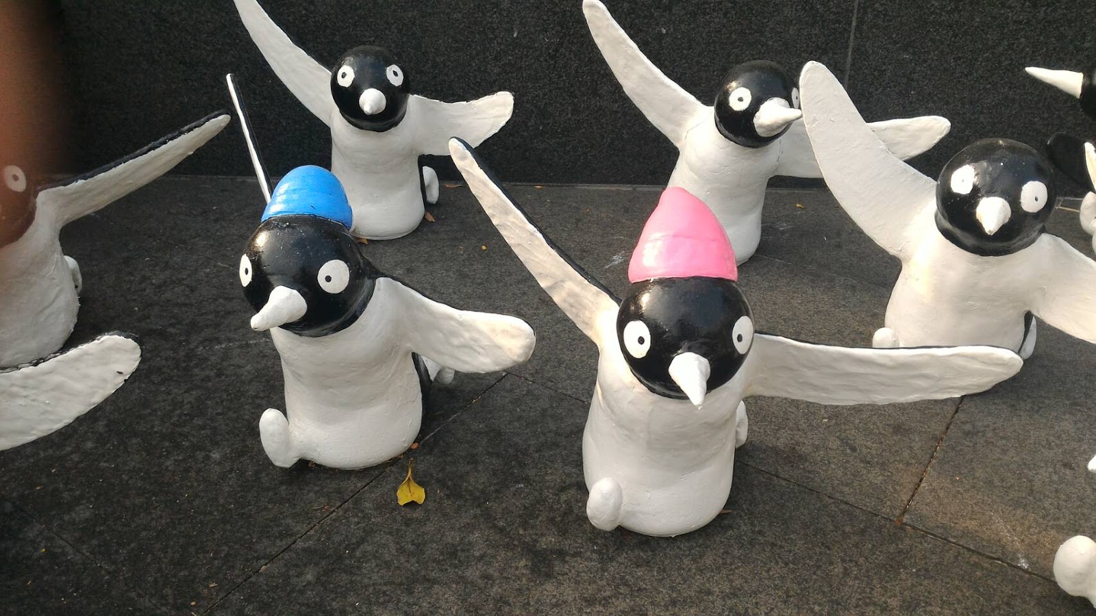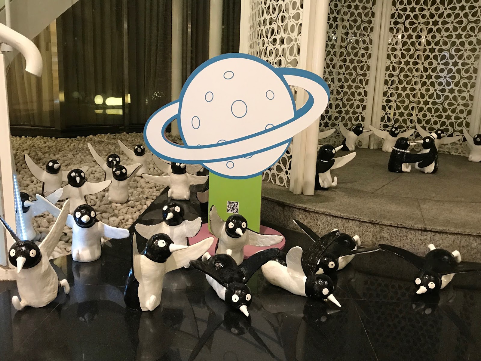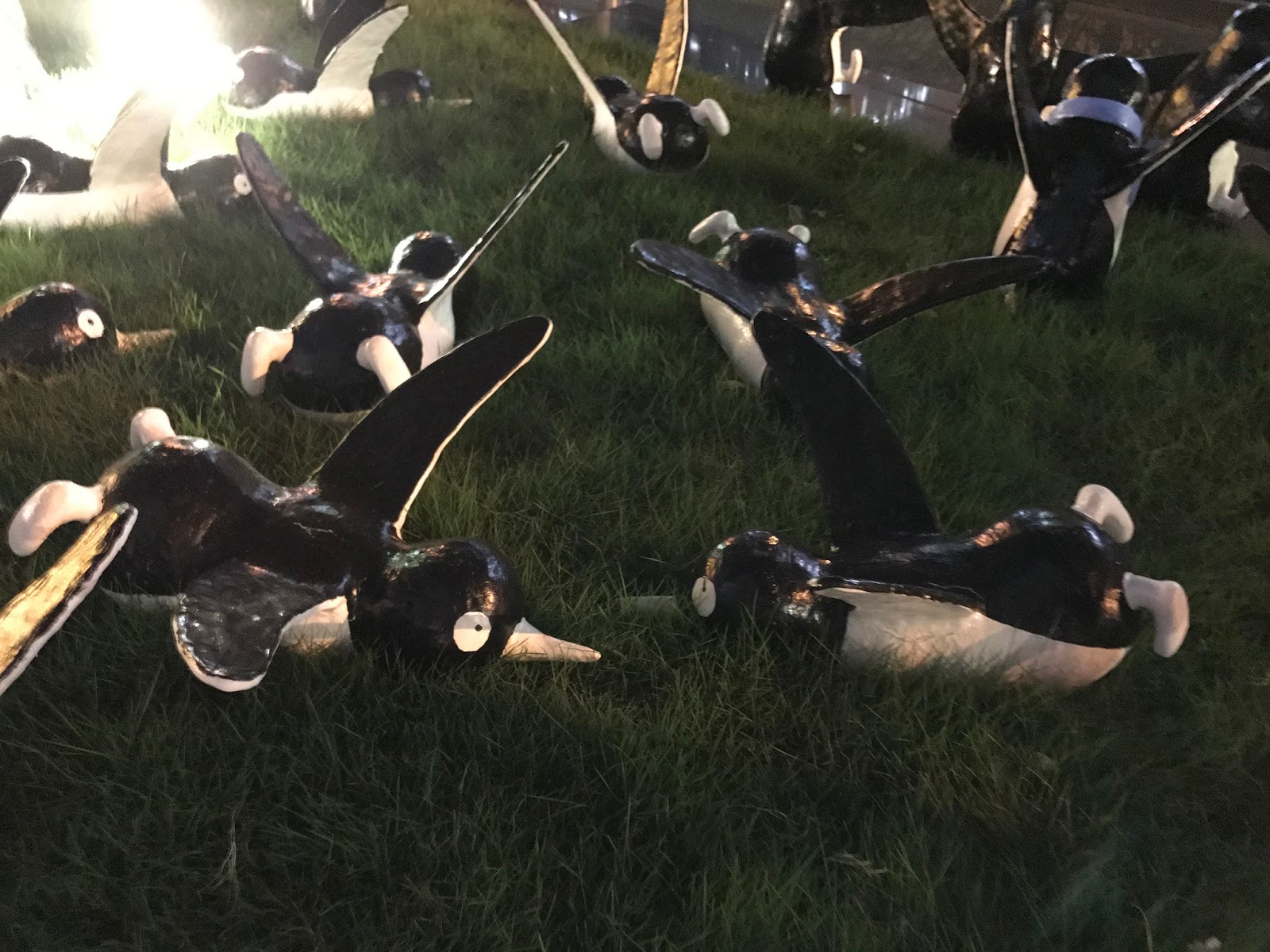 企鵝擺放在廣場綠地上感覺像是要去遊行(喂 XD