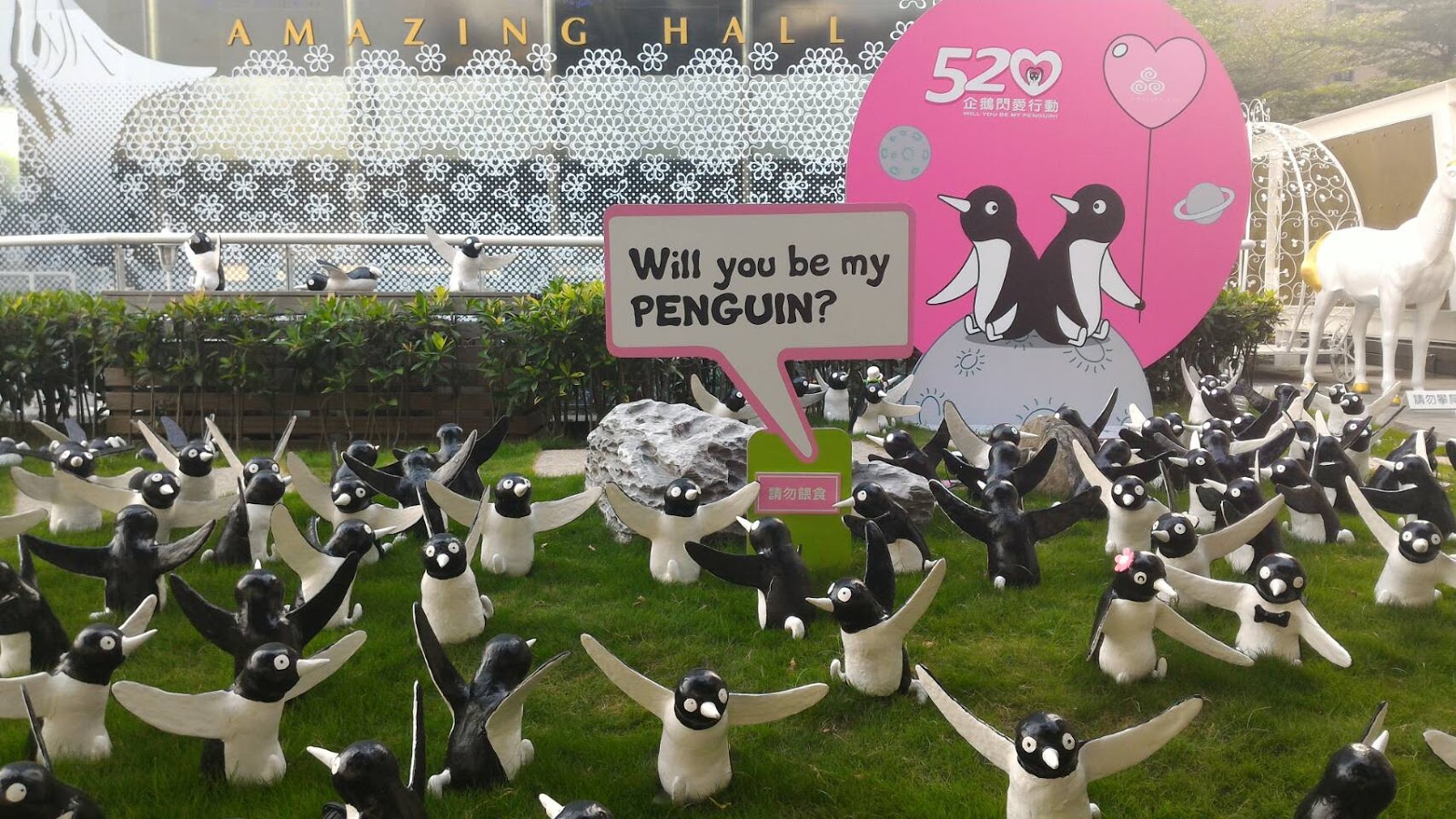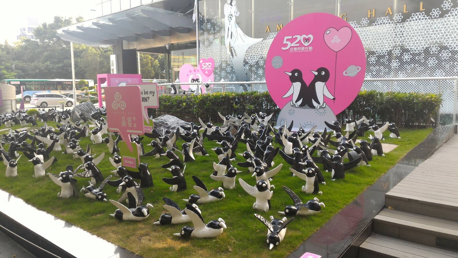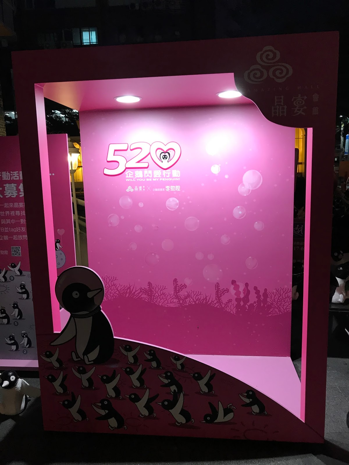 在晶宴會館館場前舉辦了520企鵝閃愛行動免費展覽