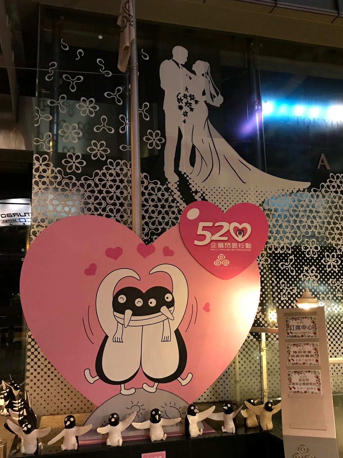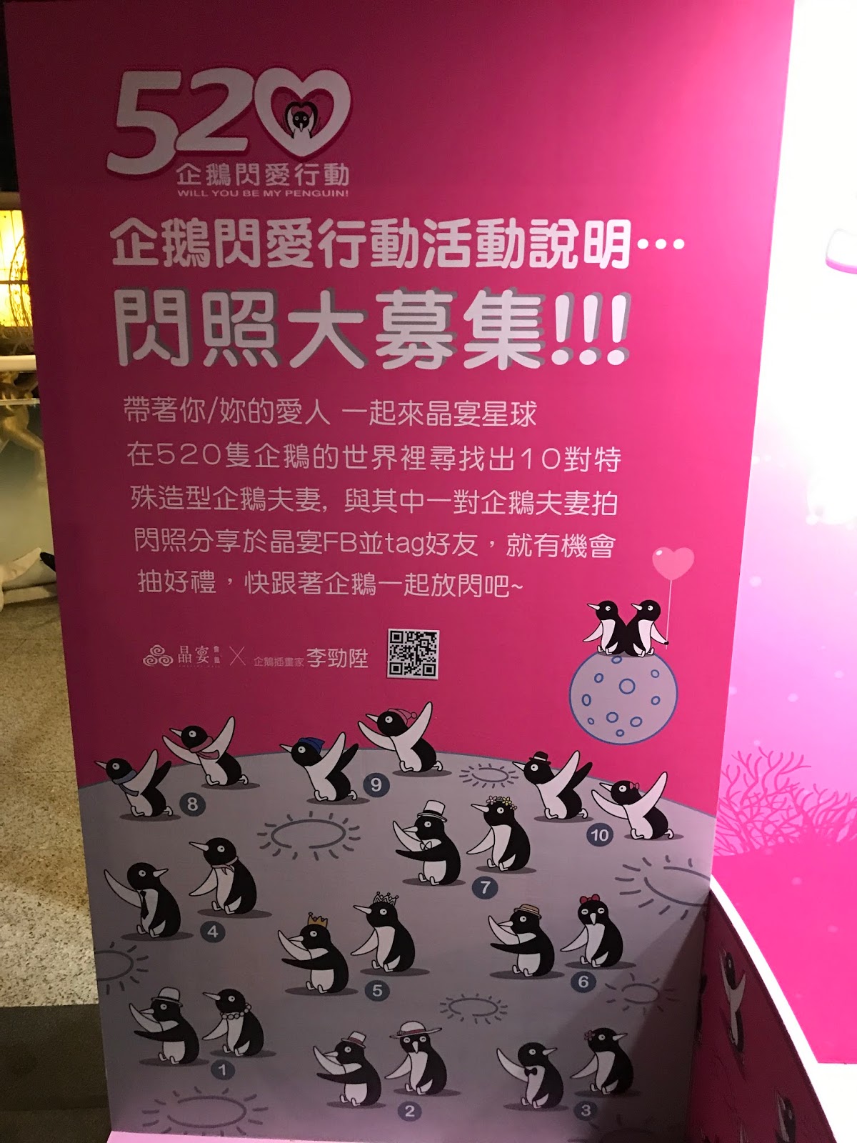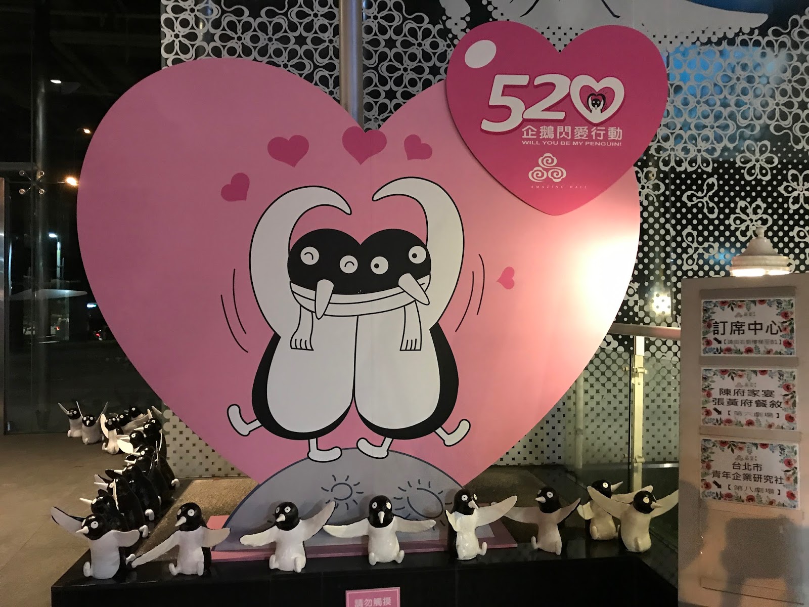 在晶宴會館館場前舉辦了520企鵝閃愛行動免費展覽