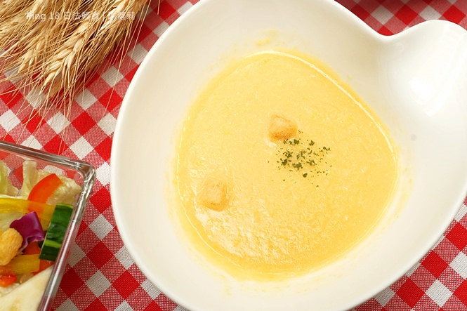 它們家的主廚濃湯我自己還蠻喜歡的,能吃到玉米本身的清甜之外,裡面還有不少細碎玉米粒,另外也加了一些麵包塊增添口感。