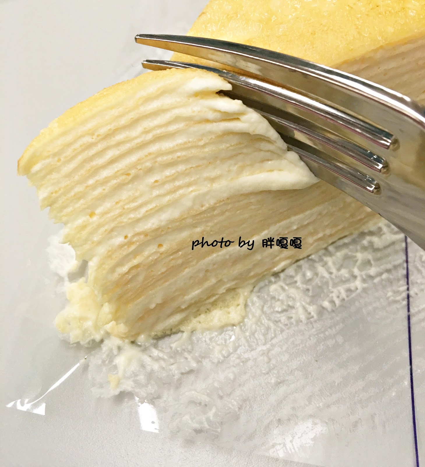 叉子輕輕下壓可明顯感受一層層的可麗餅皮被分割