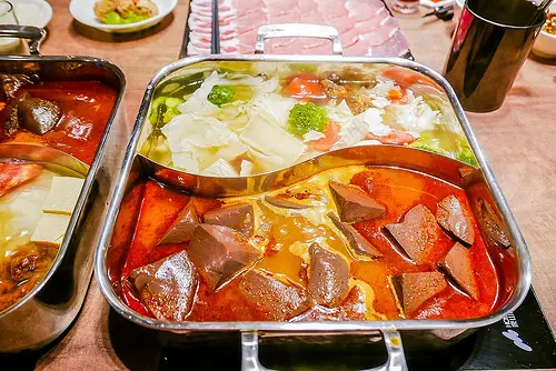 一端上方鍋看起來也太大了!店家說這一鍋裡頭可以放下鴨血20塊和豆腐20塊,足夠直接應付一次10人的團體一起用餐