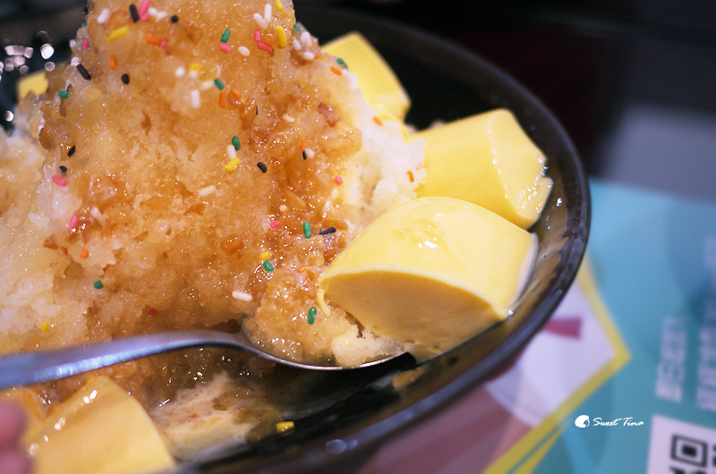 布丁牛奶冰 - 中間的冰是淋上糯米糖水後再淋上煉乳,配料就是單純的布丁。