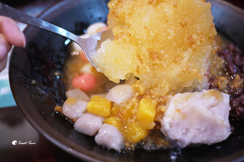 像這樣往上挖,冰就不會馬上因為溫料的配料而馬上融化呢,不過因為湯圓及芋圓遇冰較容易變硬,所以建議可以從這二樣先下手哦。