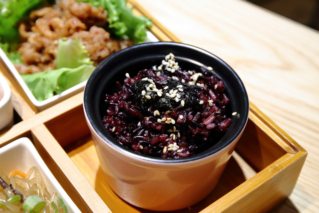 海苔紫米飯,辣燉雞醬汁淋在飯上拌一拌吃更是人間美味〜