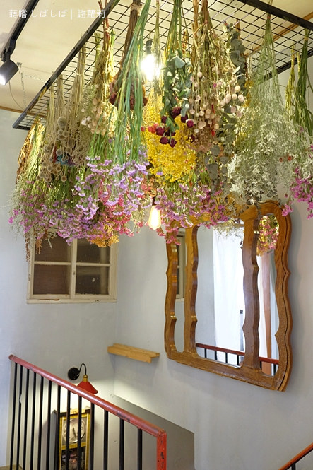 一上樓,又忍不住讓我再一次驚呼了一下,由乾燥花佈置的天花板也好美,忍不住想說,這邊真的處處充滿驚喜耶!