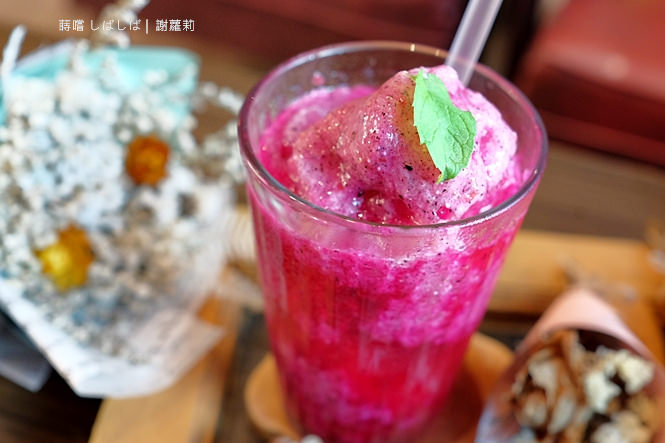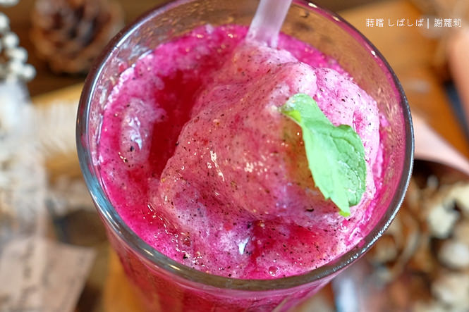 用冰沙的口感呈現,以火龍果、蘋果為基底,另外再加了玫瑰蘋果醋,甜度比想像中低一些,很適合不愛喝太甜的朋友,我就是著迷於它帶來的沁涼、卻又不過份甜膩,也許是那火龍果帶來的色澤吧!總感覺這杯飲料看起來好熱情:)