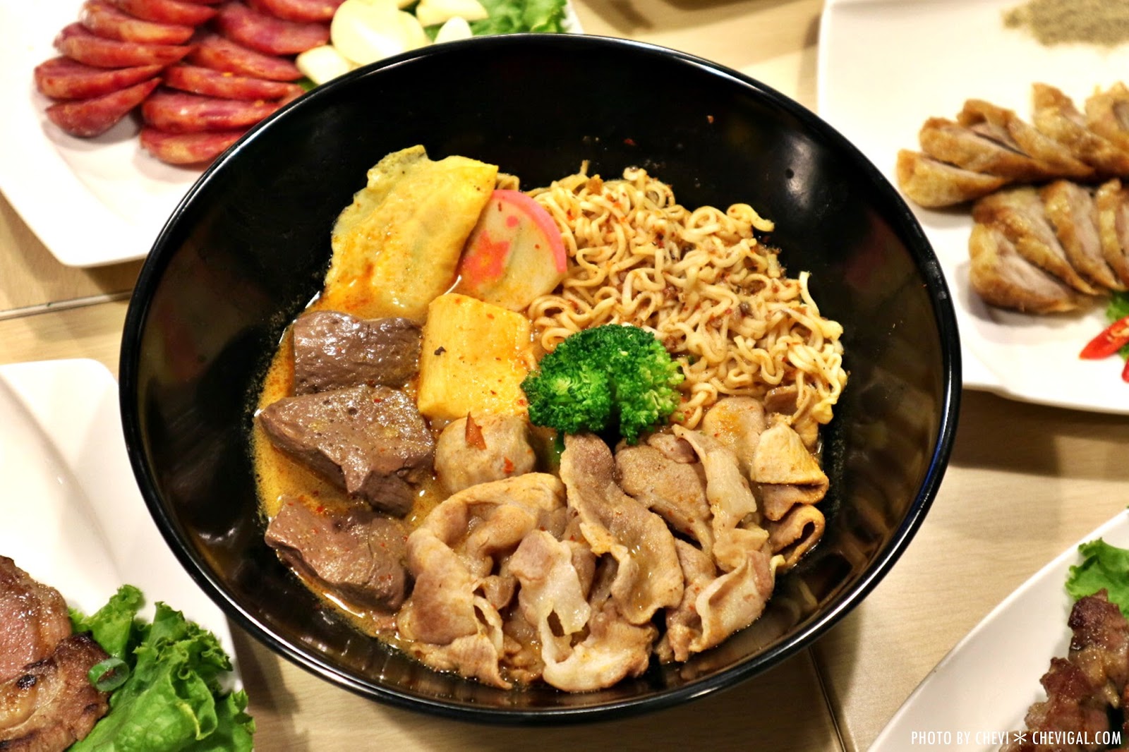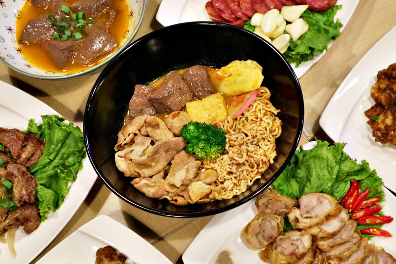 這道可以說是前面麻辣鴨血的豪華升級版,多了泡麵、肉片、蔬菜、蛋餃、魚板等配料,會忍不住讓人想到,平常自己在家半夜泡泡麵、熬夜看球賽的畫面是不是 XD