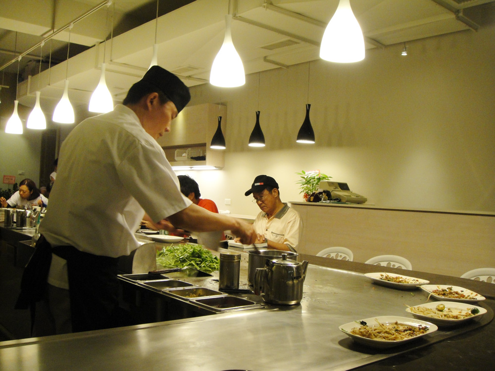 「豬肉與蝦」的套餐,注意那個蝦應該有比一般鐵板燒〈一般應該就是大埔吧!哈〉大上許多,還貼心地撥了殼,也很新鮮,豬肉也是很嫩,再加上豆芽與空心菜分量滿滿。