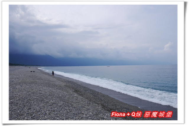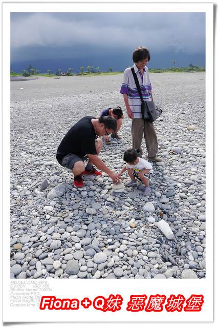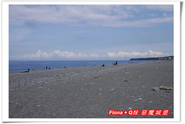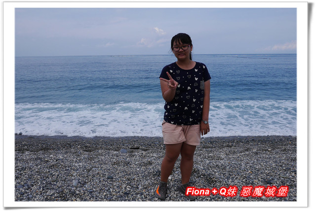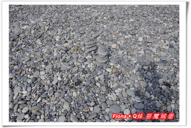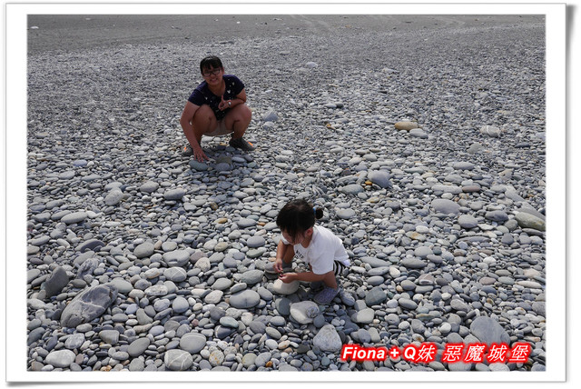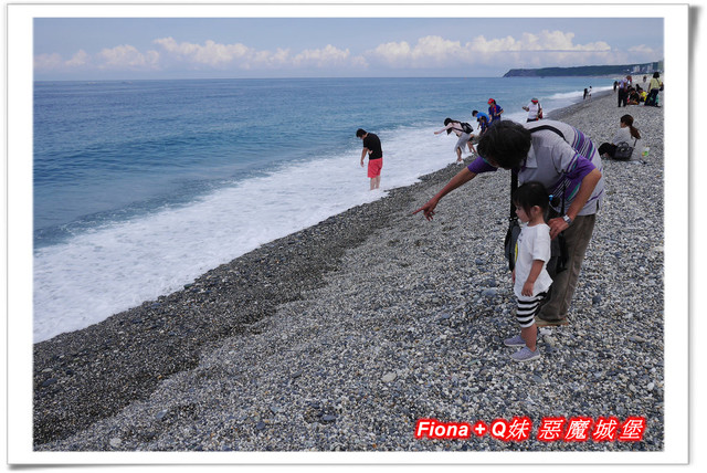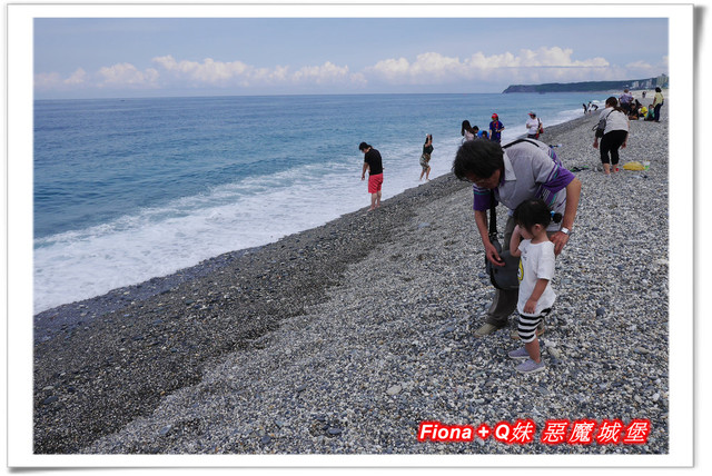 因為浪打得有點高,我們覺得不太適合Q妹下去踏浪,怕有危險,所以大家就一起陪她不下水,只在石礫灘邊欣賞海景 + 丟丟石頭過過癮囉 !