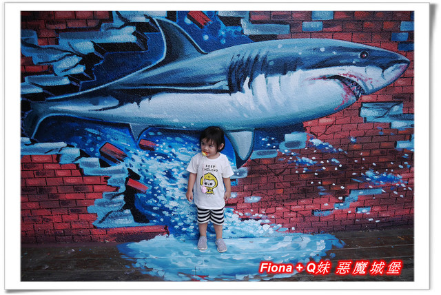 餵完魚,往停車場方向走的時候,在牆面上發現幾幅色彩鮮豔的魚彩繪,無論是破牆而出的鯊魚或從水中一躍而起的鯨魚,都好逼真呀 !