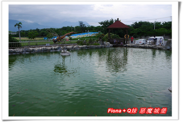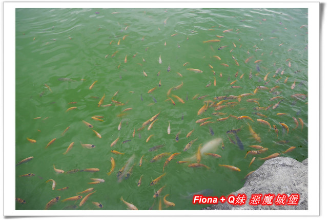 「花蓮酒廠」還有一座大大的水池,裡頭養了好多肥美的魚兒,買了一罐魚飼料讓姊妹倆餵魚,這些魚原來是遊客養大的無誤啊 !呵呵 !