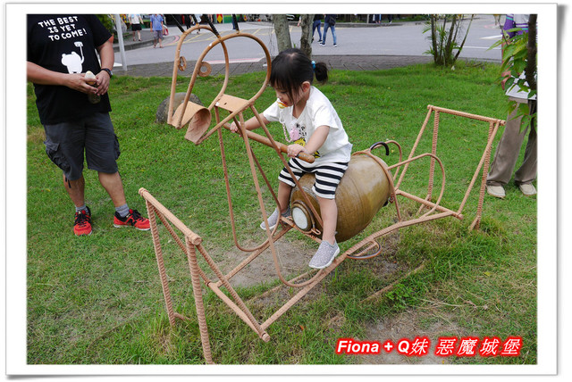 周邊有幾個搖搖馬,座位部分還是用酒甕做的,好特別,雖然高度有點高,Q妹還是玩得很開心 !