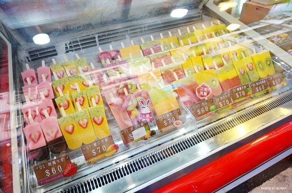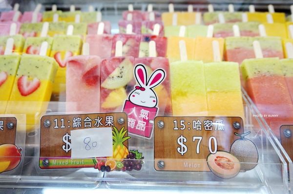 冰櫃內冰棒繽紛的像彩虹色似的,