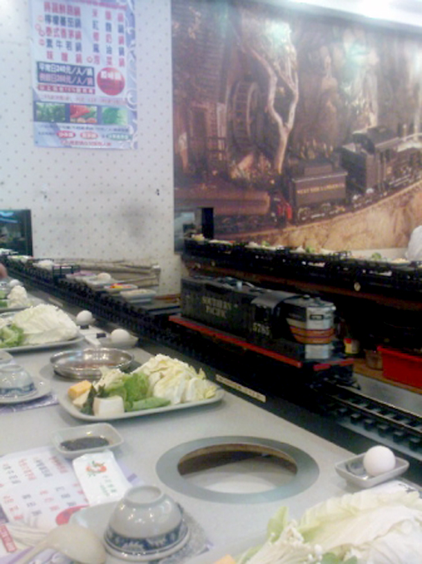 是採用軌道小火車會為動力的迴轉素食涮涮鍋
