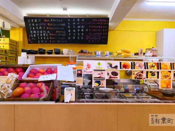 櫃台擺了滿滿的芒果,靠近聞還有淡淡的芒果香氣,看到飽滿又色澤鮮豔的芒果,完全被吸引住,不點個芒果冰都不行了呀~