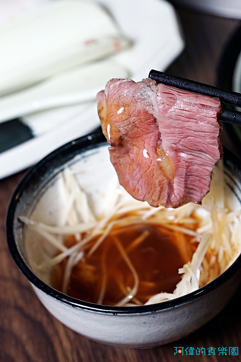 店裡的招牌就是這款溫體牛肉,顏色較冷凍的紅潤。陳老闆用的是自家在台南牧場養的牛,一定都是用800公斤以上的閹牛,因為閹牛沒有過多的雄激素,肉質才更為軟嫩。每天現宰後搭高鐵運來台北,才會這麼新鮮。另外也引進金門最大的養牛場「良金牧場」的牛,據說這裡的牛飼料裡有酒廠出來的"酒糟",肉質特別軟嫩。