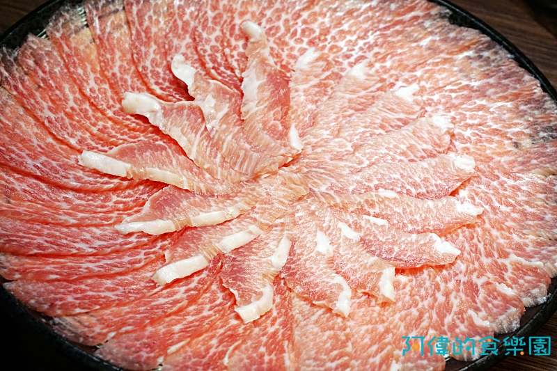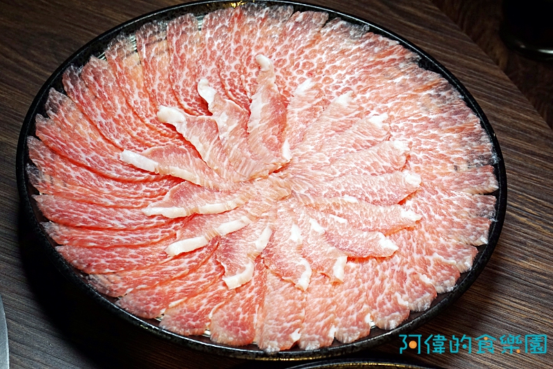 這一整盤的油花也太美了,蠻像松阪豬的,但其實它是"上蓋肉",也就是豬肩位置的肉。