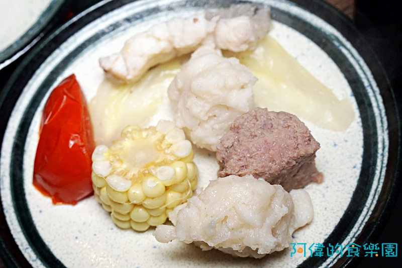 燙熟的各類食材,樣樣都鮮甜,尤其「國宴花枝漿」實在厲害,超甜、超彈牙!水果玉米更不用說,大家吃不過癮,再叫一盤。