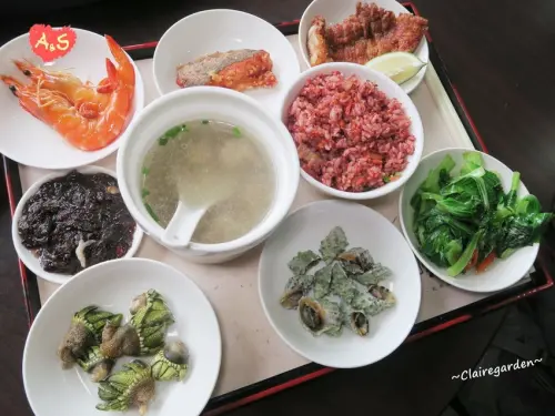 個人風味套餐有白飯與酒糟炒飯可選擇,搭配七樣配菜與湯品,雖然份量看似不多,但其實吃下來非常飽足,同時又能品嘗到道地的特色食材。