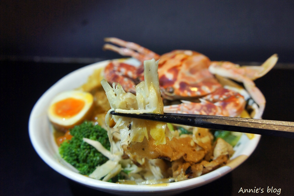 這道丼飯真的超威的,除了有一隻花蟹外,還有烤牛肉,另外丼飯上還鋪滿了蔬菜、溏心蛋,非常的豐富呢。