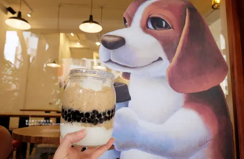【台中北屯】雪冰王子The Ice Prince-人氣商品珍珠奶茶雪冰好大一罐.細緻綿密的鮮奶雪花冰.在文青的雪冰王子店裡.窗邊還有拿咖啡可愛又療癒的小狗.來張合照吧~
