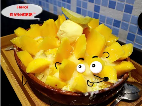 搞笑的是,舀起來的芒果如果不小心掉到碗中央會不見?!