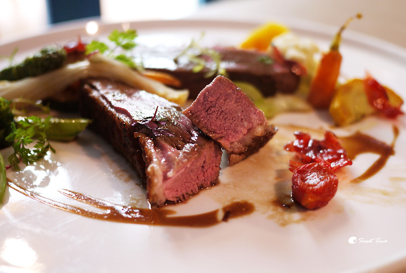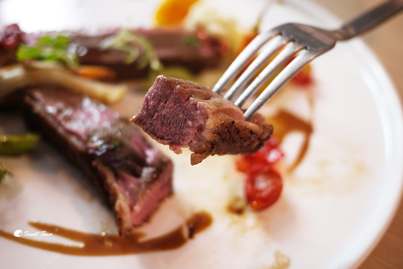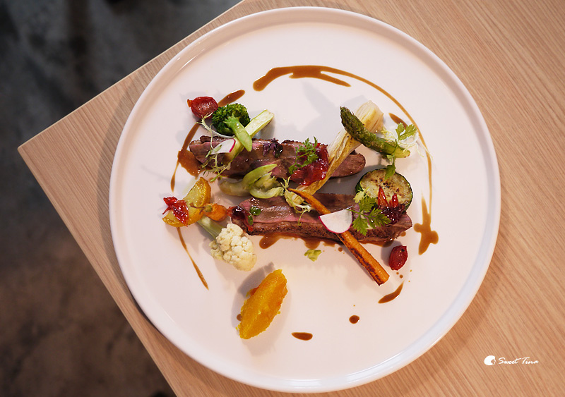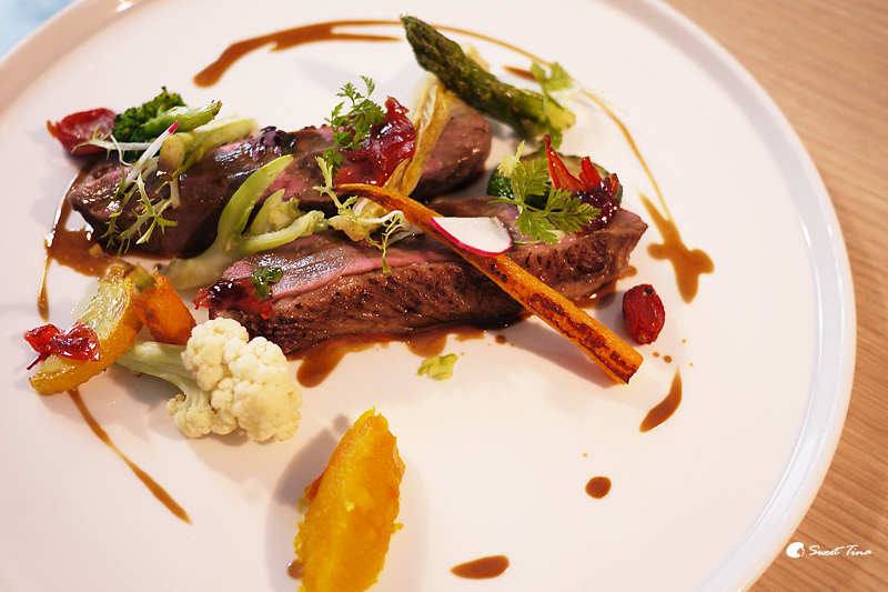 櫻桃鴨搭配洛神花醬汁後,非常清爽也非常對味,而且一旁的蔬菜也有畫龍點晴的效果,讓蔬食和肉之間達到一個均衡的狀態,超推推推的,一定要來品嚐看看呢。