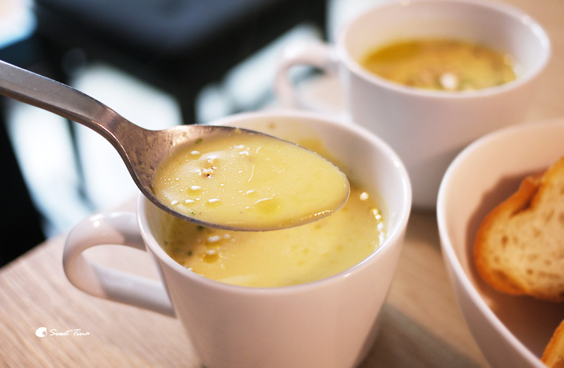 濃湯使用了大量的玉米熬煮,香甜味十足,是非常有質感的濃湯。