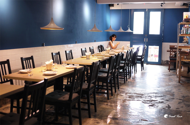 藍色的大門顯眼卻不誇大,給人的感覺很舒服,尤其是室外的座位,還有陽光透進來呢,不過最近實在太熱啦,所以還是選擇室內囉。