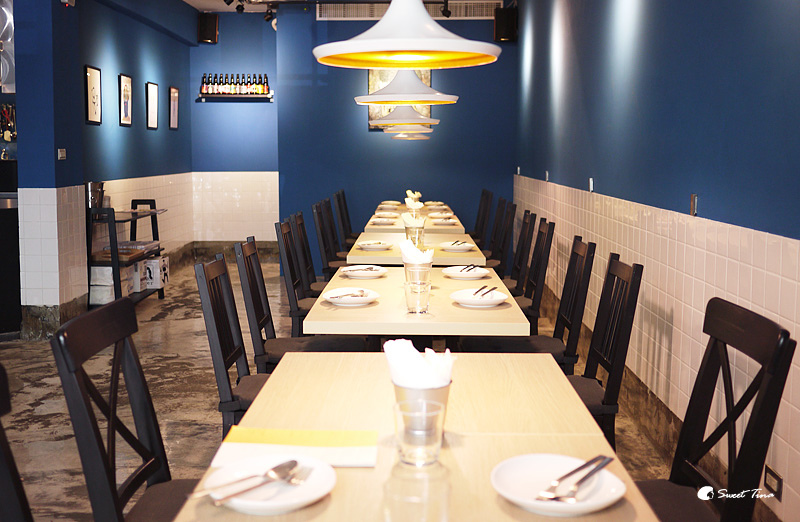 Restaurant Page 頁小館外觀給人的第一印象就是簡約明亮,但卻藏著不少驚喜在裡頭,藍白搭配的風格色調顯眼卻不誇大,擺盤乾淨簡約卻蘊藏深度的美味在其中,是一間很有質感的餐廳,而主廚蔡斌翰曾任台北亞都麗緻大飯店廚師、西餐教師、米其林三星主廚的特別助理等,資歷豐富,更獲得許多廚藝大賽肯定,在餐點方面絕對是具水準且美味。