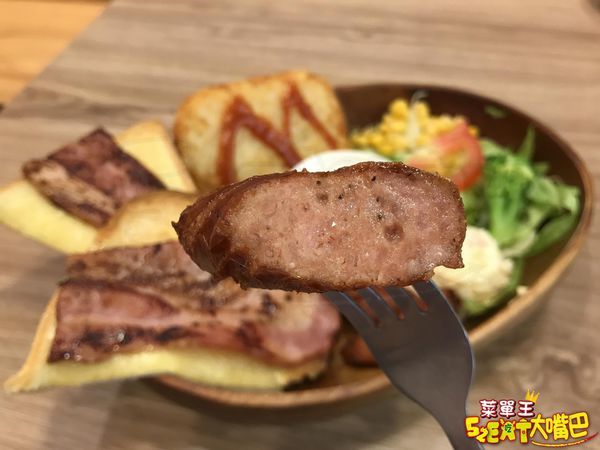 ▼英式皇家經典拼盤,看起來非常豐盛的皇家拼盤,沙拉、馬鈴薯泥、薯餅、法式吐司、培根、德式香腸看起來超豐盛,用木盆盛裝感覺更氣派了!最迷人的就是法式土司與培根,金黃色的法式吐司飄著隱隱的蛋香,配上焦香的培根味道好極了!