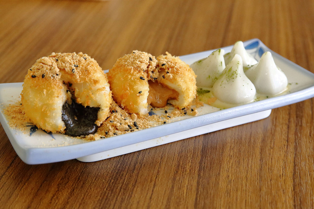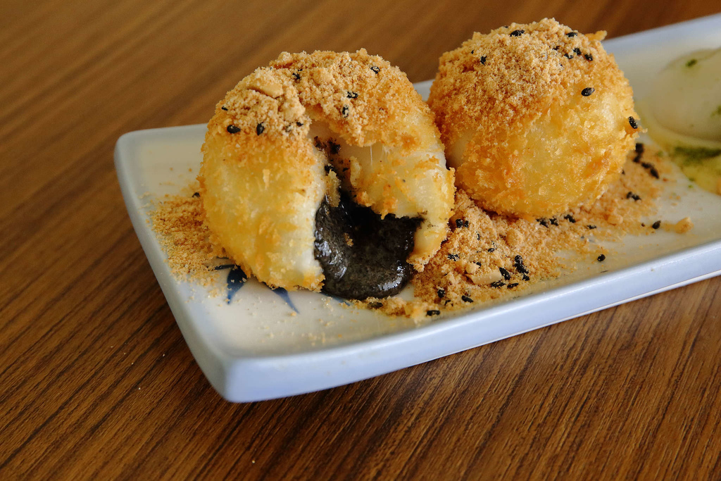 一口咬下,如土石流般的爆漿視覺效果,又有同小麻糬般的口感,讓小編直呼「湯圓炸起來意外好吃」