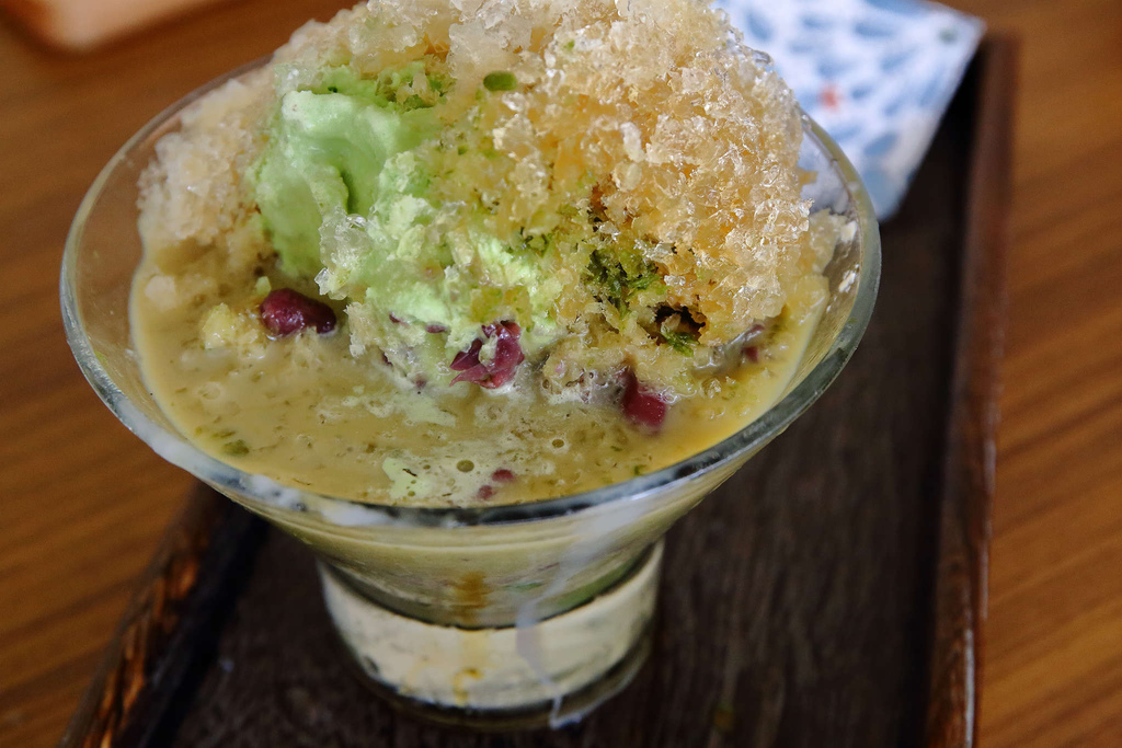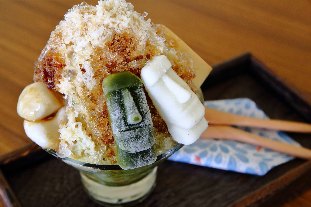 這碗吸睛度十足的DumDum抹茶剉冰,可愛的DumDum是用抹茶以及牛奶所製成的,下面則是抹茶剉