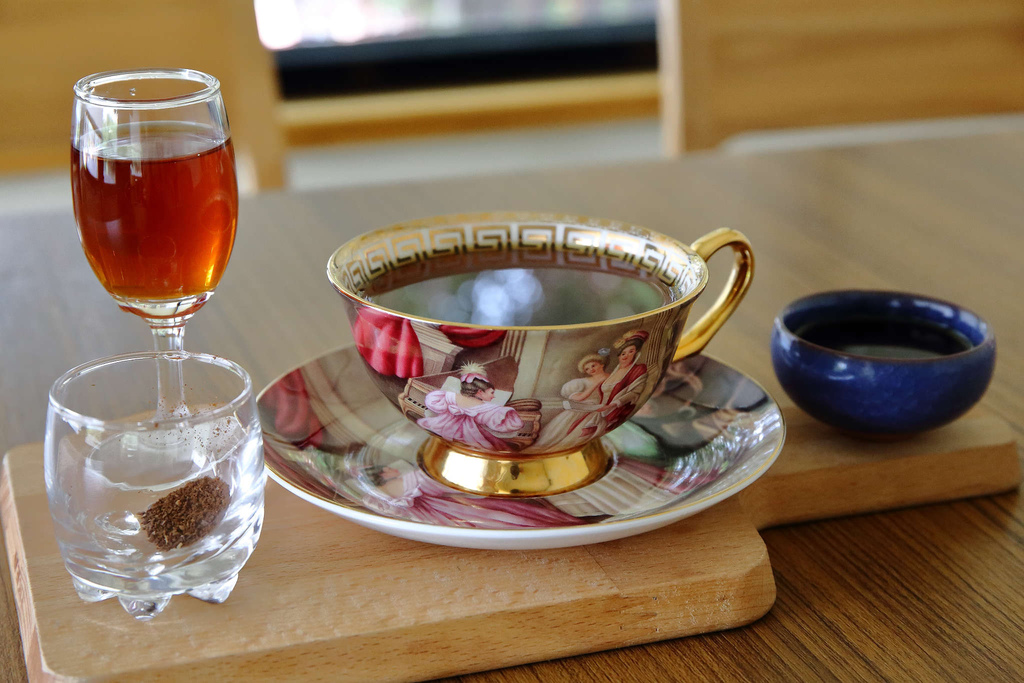 這家的手沖單品咖啡是這樣一整套送上桌的,講究到從英式咖啡杯、聞香杯、分享杯樣樣俱全