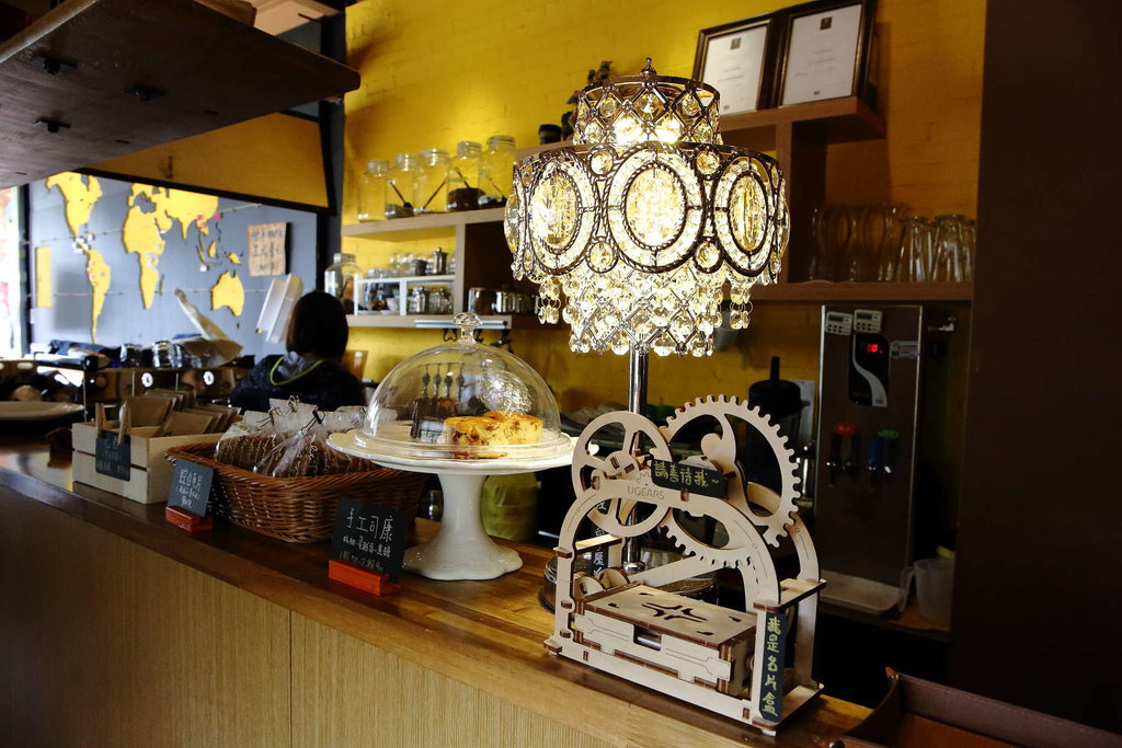 牆上高掛著一幅世界咖啡地圖,看著它想像自己乘著滑翔翼環遊世界
