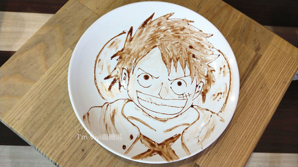 老闆突然送上一個手繪海賊王魯夫的盤子!說要給我們拍照!