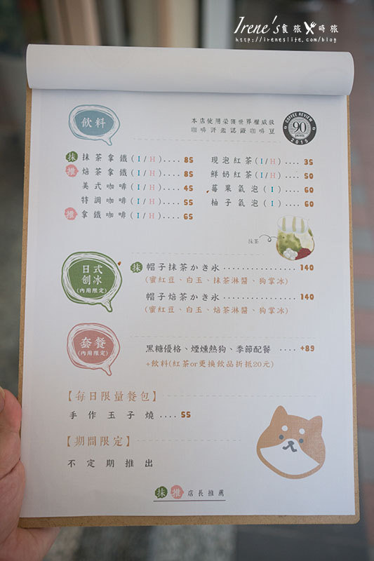 本日重點-抹茶柴犬狗掌冰!翠綠的抹茶刨冰加上蜜紅豆、白玉、狗掌冰,