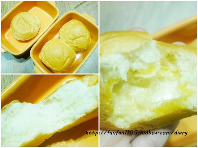 爆漿餐包吃的話要小心燙口喔!裡面包覆著微鹹的爆漿奶油,香氣十足,超好吃的