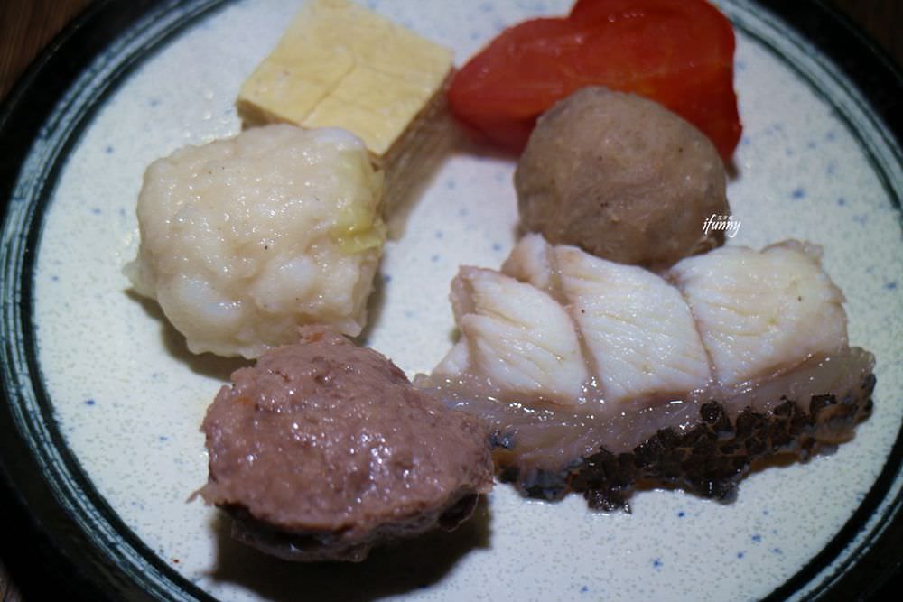 在白湯煮過的食材來個大集合,那白湯底原本就附的牛肉丸紮實具彈性超好吃,另外番茄及豆腐也是好吃極了!