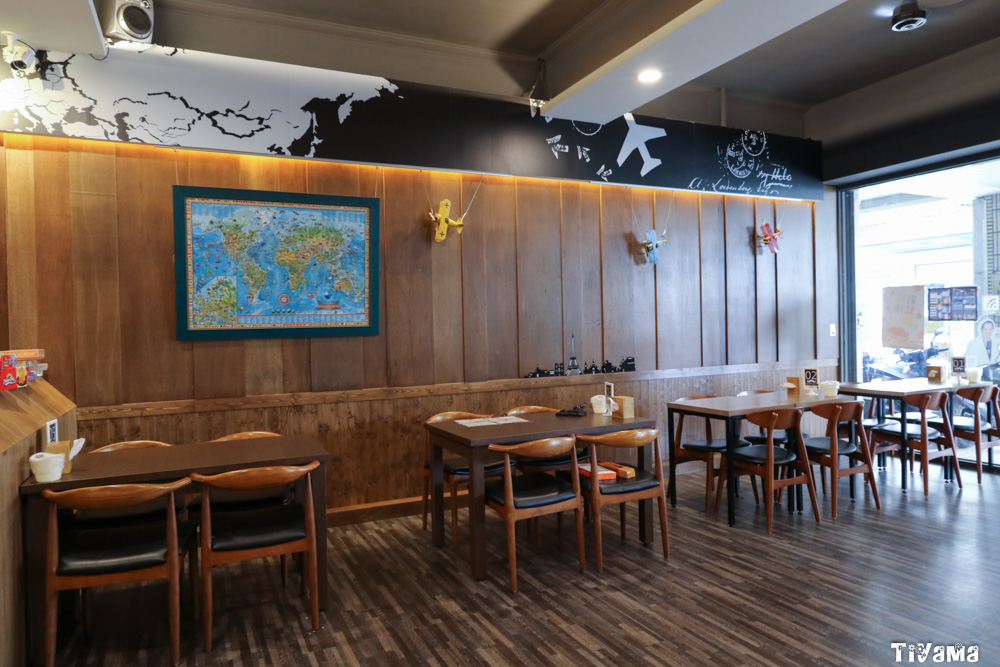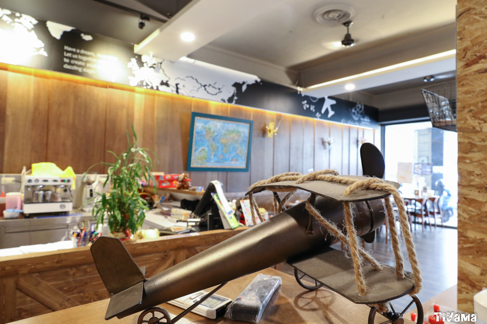 部份選用藍色搭配飛機和世界地圖的圖案和大型的鬍子茶LOGO設計,加深整體視覺感受